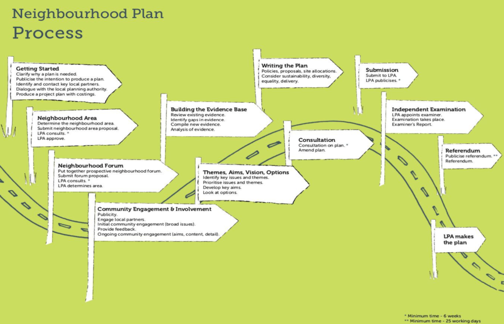 The steering group meets regularly to oversee the preparation of the Neighbourhood Plan.